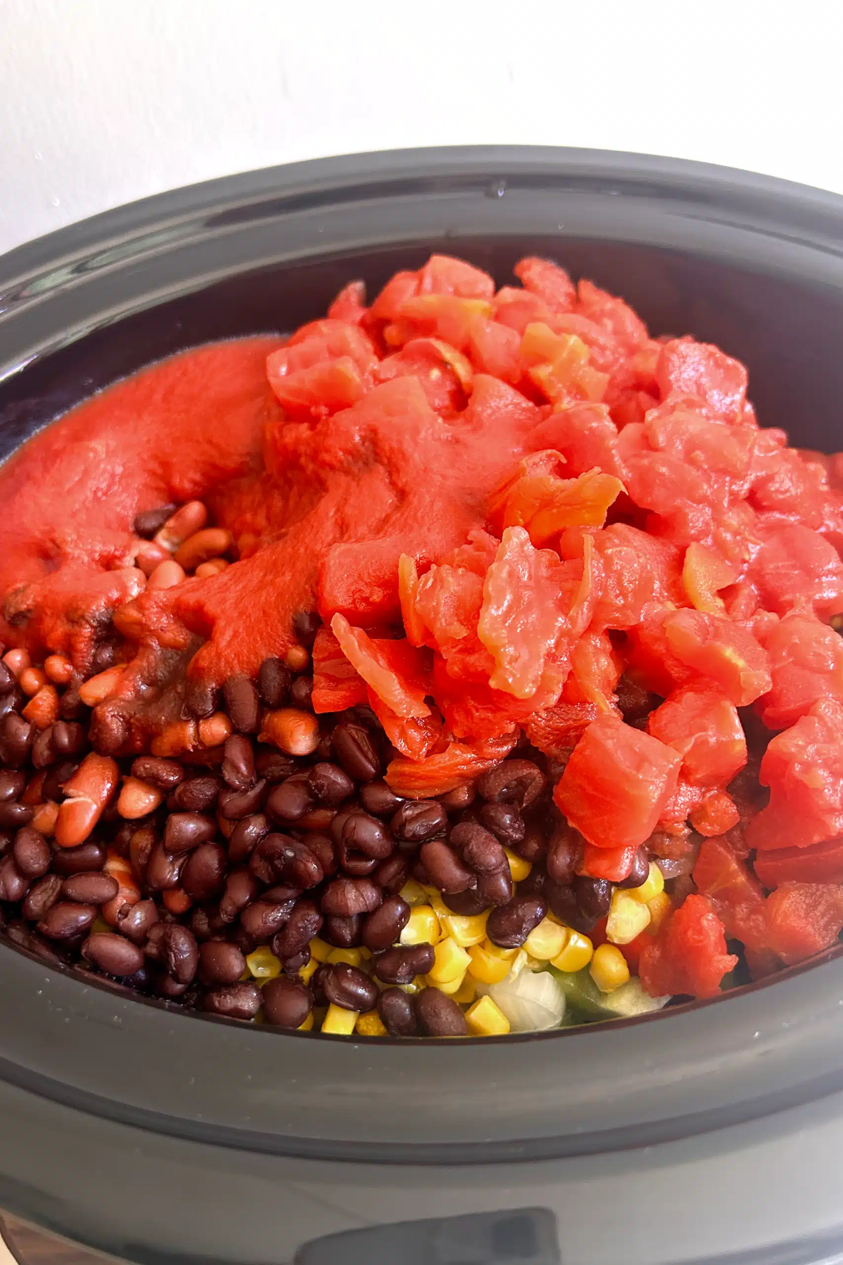 - Step 7 – Add the tomato sauce, tomatoes, beans, and corn to the pot.